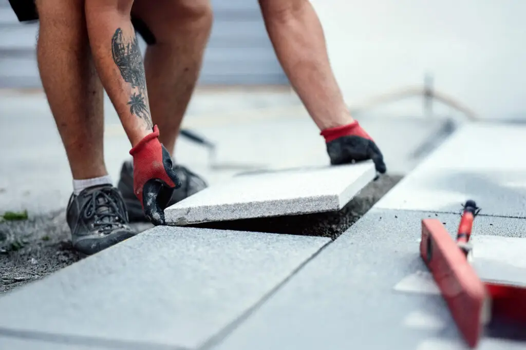 - Verlegung von großformatigen Steinen mit variabler Schichtstärke
